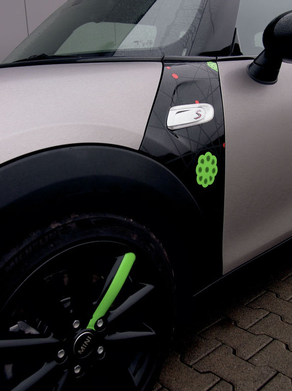 Der Mini in Brushed-Ttitan, alle Chromteile foliert in Schwarz-Gloss ... das Ergebnis der Folierung zur Sparkassen AutoSchau 2015. Das Team von print&plot WERBETECHNIK Polch-Koblenz-Diez blickt mit Zufriedenheit auf das Ergebniss!
