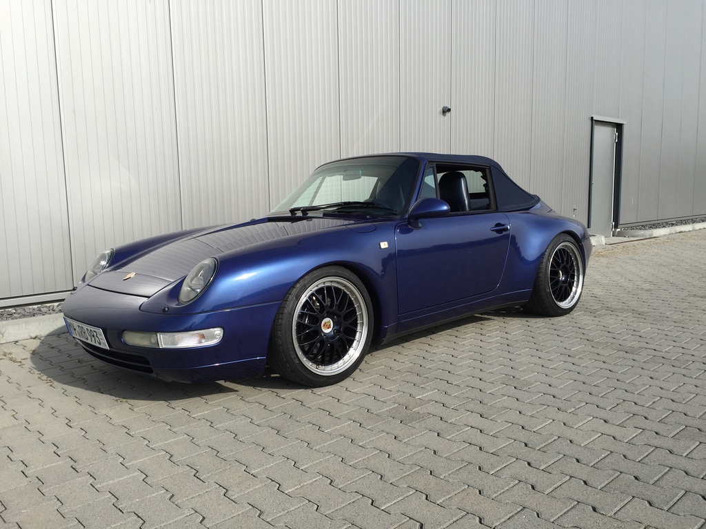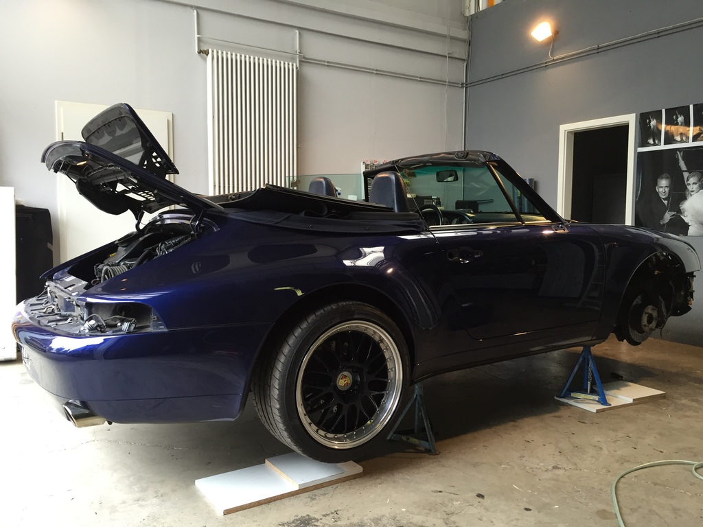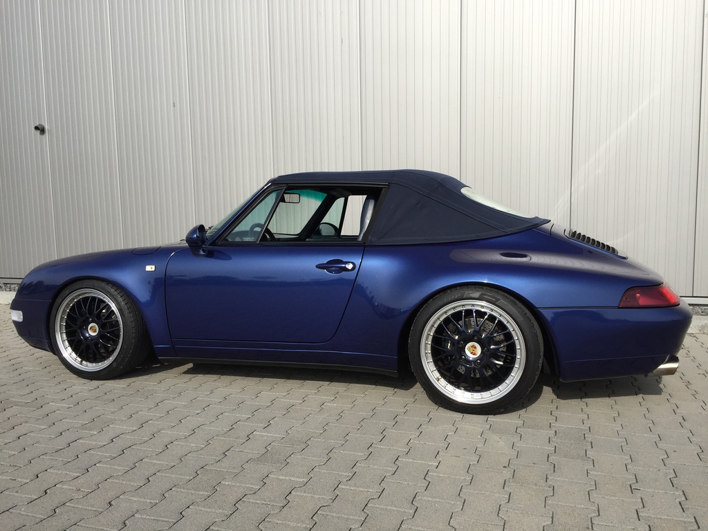 Vollfolierung eines Porsche Cabrio, Grundfarbe silber, Umfolierung in Gletscherblau, incl. der Sitzschalen. Felgenfolierung in Schwarz Matt incl. 6mm umlaufend in Gletscherblau ...