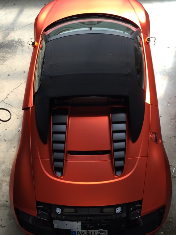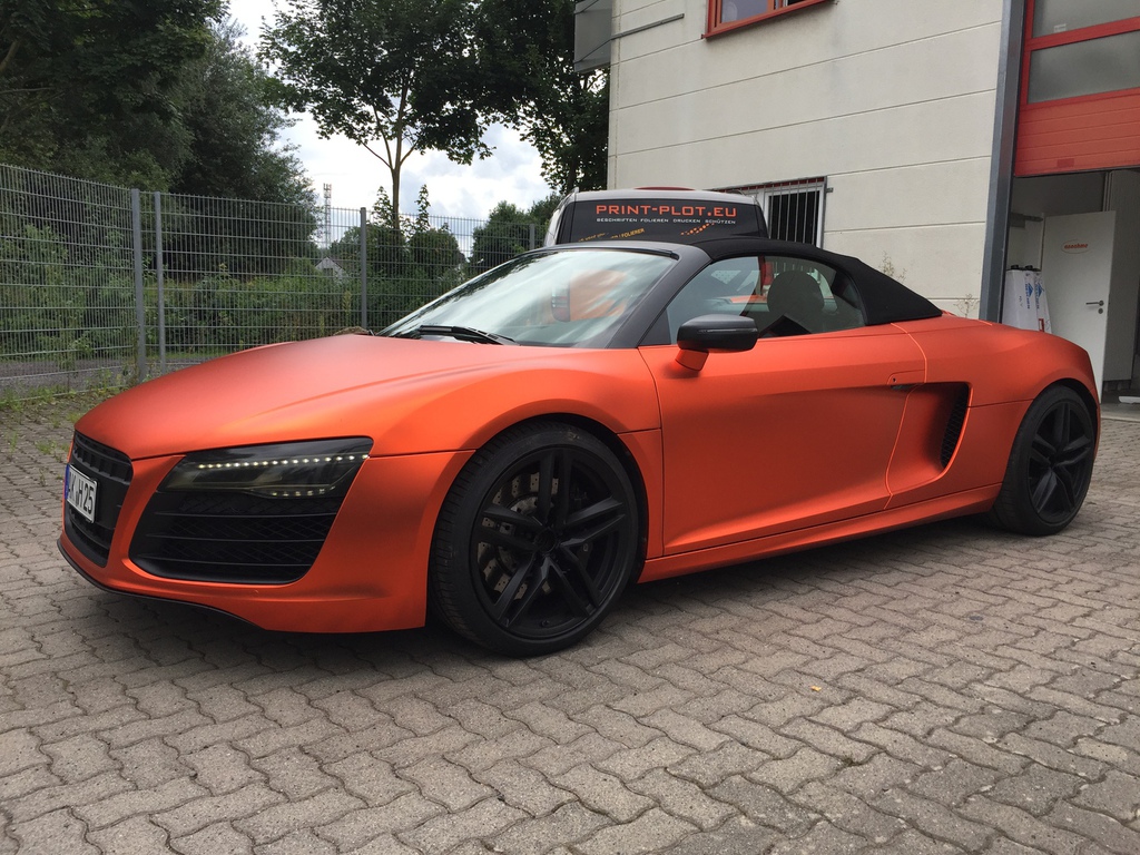 Andreas Bremer von print&plot WERBETECHNIK Polch-Koblenz-Diez foliert einen Audi R8 V10 mit ABT-Umbau. Bei der Folierung wurde Wert darauf gelegt die Umbauteile in Echtcarbon zu erhalten um dem Fahrzeug ein agressiveres Aussehen zu geben. Auch Elemente der Felgen wurden mit foliert.